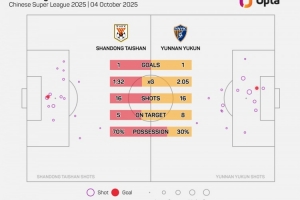 云南玉昆本場(chǎng)比賽有8次射正,追平球隊(duì)單場(chǎng)中超射正次數(shù)的紀(jì)錄——8月15日vs武漢三鎮(zhèn)也是8次。