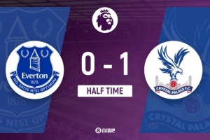 傷停補(bǔ)時(shí)2分鐘。上半場比賽結(jié)束,埃弗頓0-1水晶宮。
