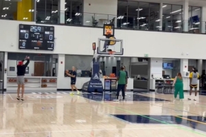 體育資訊10月7日訊 今天,印第安納記者Tony East曬出了一段步行者球星哈利伯頓投籃訓練的視頻,他已經(jīng)在沒未佩戴任何護具的情況下進行了三分顛投訓練。