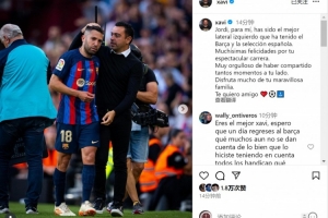 體育資訊10月8日訊 阿爾巴將在本賽季結束后退役,哈維社媒發(fā)文祝福。