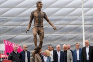 體育資訊9月13日訊 拜仁傳奇球星貝肯鮑爾的雕像今日在安聯(lián)球場(chǎng)揭幕,拜仁主席海納在揭幕儀式上的致辭。
