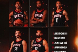 本場火箭排出了一套“五大”首發(fā):阿門、杜蘭特、小史密斯、申京、亞當(dāng)斯。