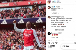 體育資訊9月14日訊 在阿森納3-0諾丁漢森林的賽后,阿森納球員埃澤更新社交媒體。
