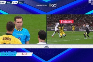 看查看完VAR后,主裁馬泰奧-馬爾塞納羅對現(xiàn)場播報:“經(jīng)審查,博洛尼亞8號球員未構成犯規(guī)。裁決:不判罰點球。”
