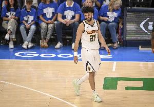 掘金球員穆雷上半場手感不佳,外線三分出手更是全部打鐵。