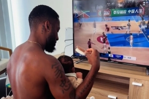 體育資訊9月15日訊 北京男籃外援杰曼今天更新社媒,曬出了帶娃一起看自己的CBA集錦的時刻。