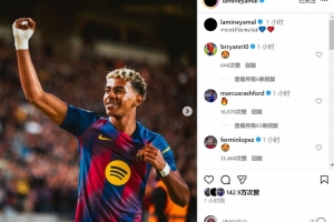 亞馬爾賽后社媒曬照慶祝勝利,配文:“堅(jiān)韌?!?/p>