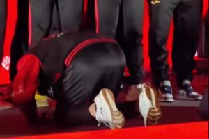 體育資訊11月10日訊 今日重慶銅梁龍進(jìn)行了沖超慶典,在晚會(huì)上,賽季中途接手球隊(duì)的主帥張外龍感謝了球員們的努力,并向隊(duì)員們行大禮致謝。