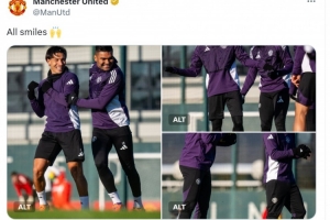 曼聯(lián)官方更新社媒動(dòng)態(tài),曬出今日的訓(xùn)練照片,庫(kù)尼亞在列,他露出笑容,看起來(lái)傷勢(shì)問(wèn)題不大。