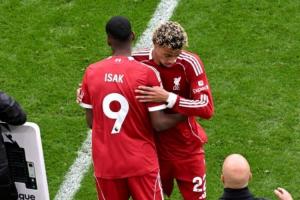 體育資訊09月20日訊 利物浦2-1埃弗頓賽后,打入一球的?;倏苏劦搅诉M(jìn)球和隊(duì)友伊薩克。