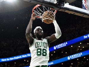 綠軍中鋒科塔在上半場無人能擋,他打了13分半鐘,7投6中、罰球2中1,拿下13分11籃板2蓋帽的兩雙數(shù)據(jù),正負(fù)值+9。