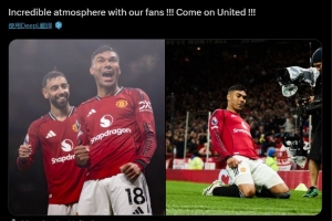 卡塞米羅曬出自己的賽場照,并配文:球迷們營造的氛圍簡直太棒了!?。〖佑吐摚。?!