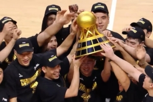 榮耀瞬間!香港金?;@球俱樂部大比分3-1戰(zhàn)勝長沙勇勝,NBL聯賽兩連冠,球隊捧杯慶祝奪冠。