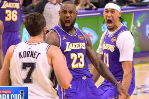 你干嘛??詹姆斯豪邁慶祝再踩霸王步 沒踩完被海斯偷襲中斷!