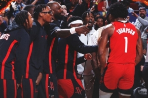 本場比賽,火箭球員阿門·湯普森高效發(fā)揮,打了41分鐘12投8中,三分3中0、罰球4中4拿到20分9籃板8助攻1搶斷,正負(fù)值+8。