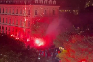 體育資訊9月23日訊 巴黎前鋒登貝萊獲得2025年金球獎,巴黎球迷放煙花慶祝。