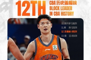 比賽進行到第二節(jié),王哲林送出個人本場第2次蓋帽。至此,王哲林CBA生涯蓋帽總數(shù)上升至495次,超越易立的494次,升至CBA歷史蓋帽榜第12位!