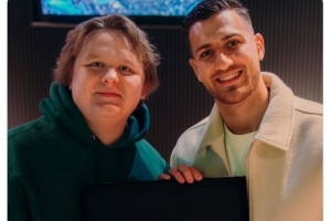 蘇格蘭知名歌手卡帕爾迪在曼徹斯特開演唱會(huì),他獲贈(zèng)曼聯(lián)球衣,曼聯(lián)官方社媒曬出達(dá)洛特與卡帕爾迪的合照。