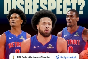 活塞隊以21勝5負(fù)的戰(zhàn)績領(lǐng)跑東部,但據(jù)預(yù)測機(jī)構(gòu)Polymarket預(yù)測,他們進(jìn)入總決賽的概率僅為13% ??